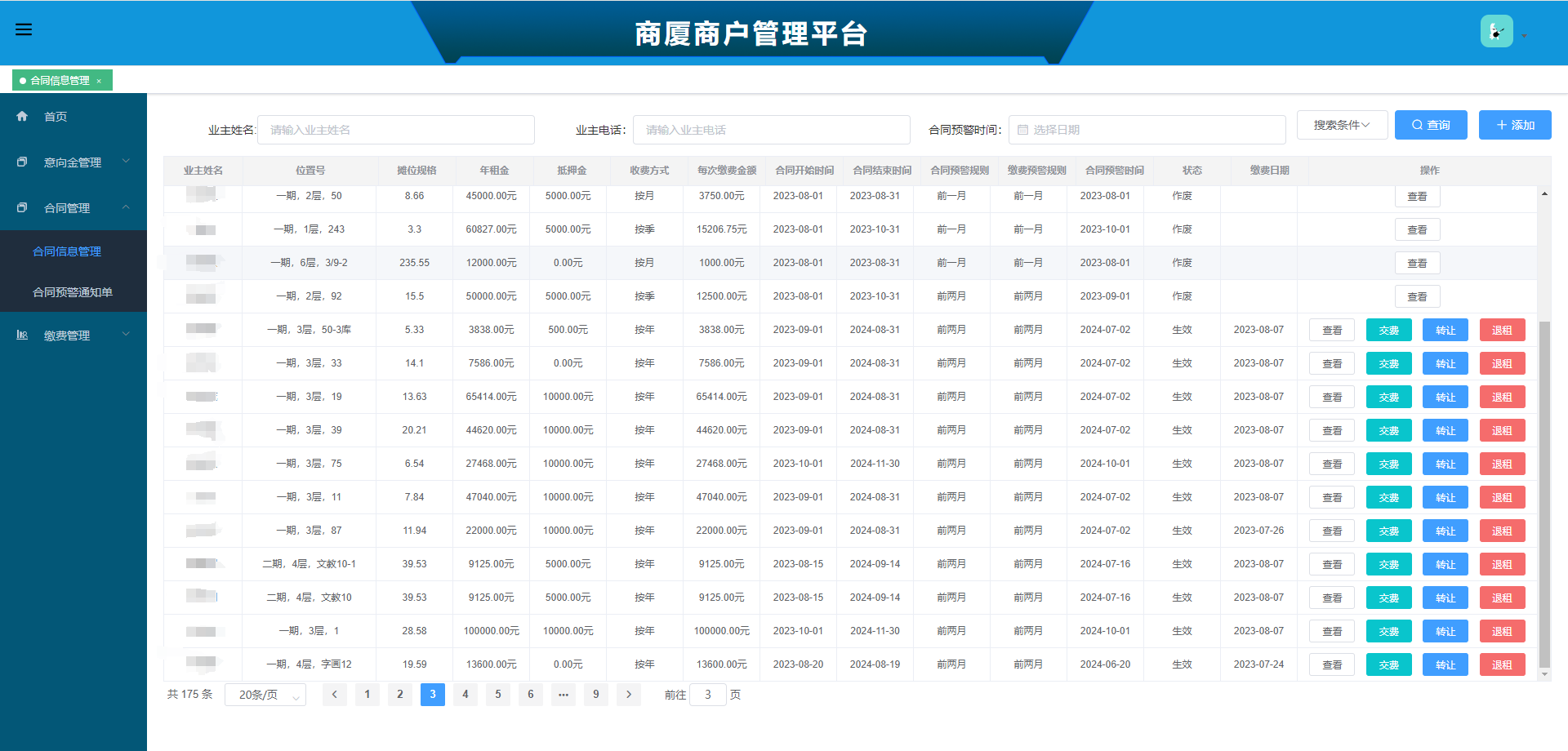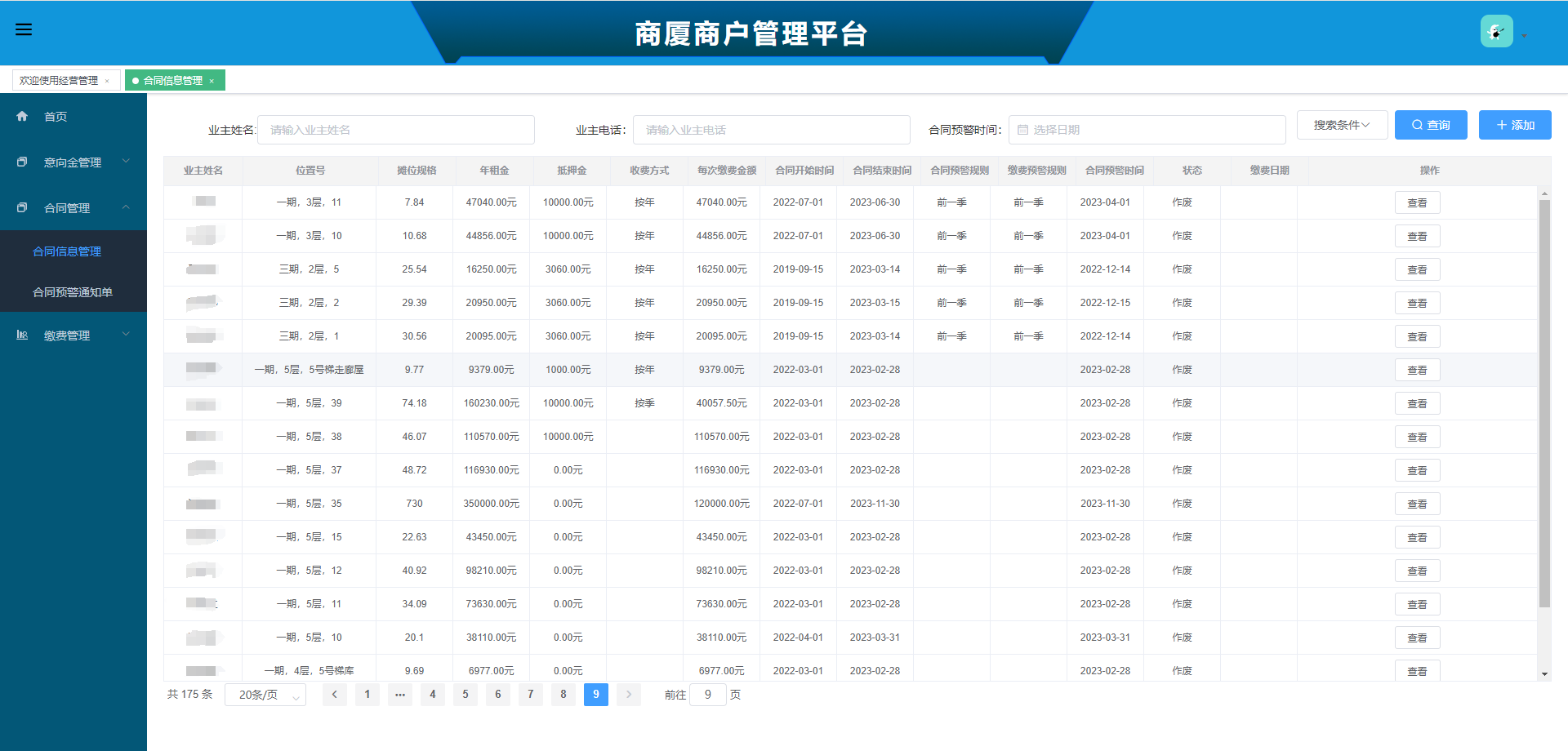 软件的研发阶段经过实地考察多个商场,小区商铺,依据实际业务管理流程而制定的解决方案,适合大部分项目。