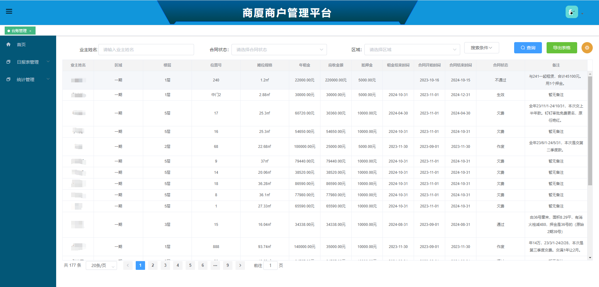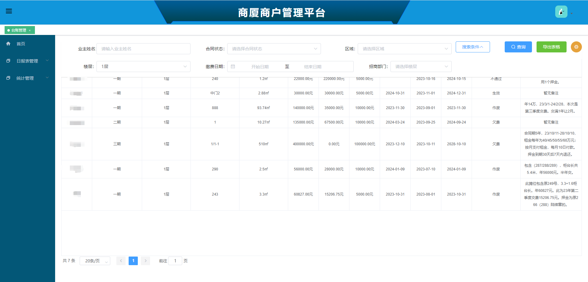 软件的研发阶段经过实地考察多个商场,小区商铺,依据实际业务管理流程而制定的解决方案,适合大部分项目。